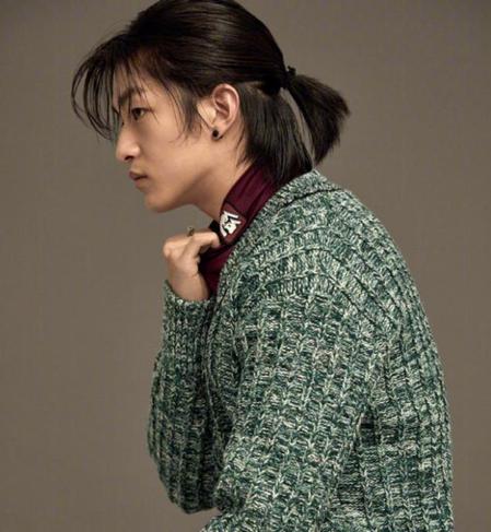 ▲屈楚萧的这款半扎丸子头加粗线毛衫,文艺范满满,侧脸的凌乱刘海,也是给这款发型增色不少。发量后移,重心向后,从侧面看,加宽了脸型,削弱了脸的长度。