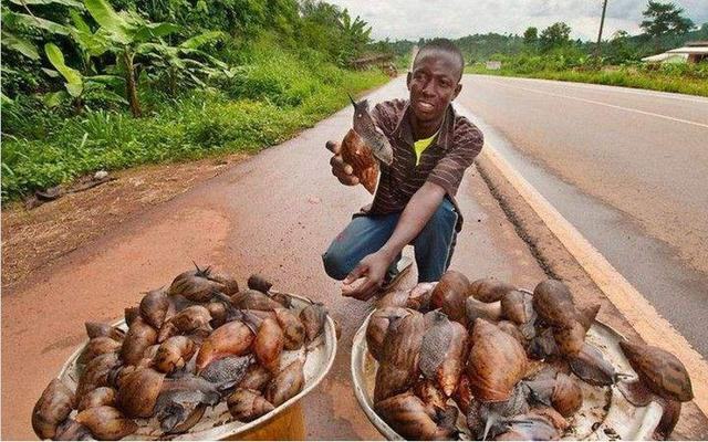 这种蜗牛看起来个头很大,最大可以长到20多非洲人厘米长得,肉比较多,营养价值也很丰富,当地人还称它为“黄金肉”,非洲人吃什么食物,据说在非洲一年可以吃掉1500万公斤的大蜗牛。