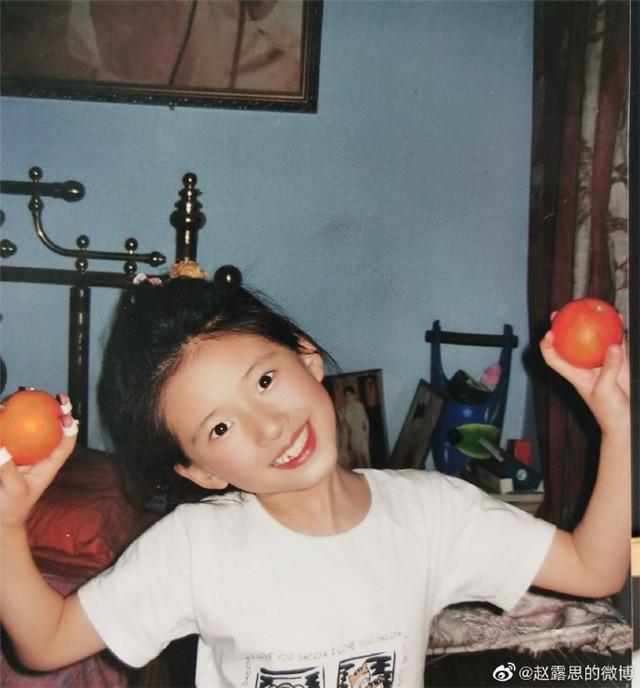 不过正经拍起照来的赵露思还是十分漂亮的,举着两个橘子,开心的看着镜头。果然赵露思这是从小美到大呀,简直就是复制粘贴着长大的。