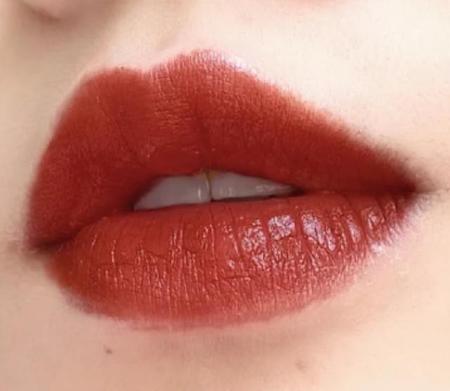 这个色号红得时间更久,已经成为Tom Ford的经典色号之一,2025年也推出了不同质地版本。颜色很微妙,略带一点点紫调的宝石红,但几乎看不出紫调,薄涂厚涂都很显白;略带一点棕调,但不浓郁,薄涂棕调不明显,厚涂也不会显得暗黑,总之,是个不太挑肤色的颜色,且各个季节都能用。滋润质地比哑光与柔雾哑光更值得选择,上嘴透着光泽感,配上宝石红,很有贵气感。年轻女孩子一定不能错过这个色号喔。