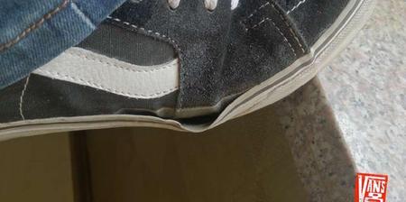 其次,我会看鞋子的质量。VANS爱开胶是出了名的,但是开胶的部分不知大家有没有观察过,一般开胶部分主要集中在脚前掌的两侧,因为那是人走路脚面弯曲的部分。