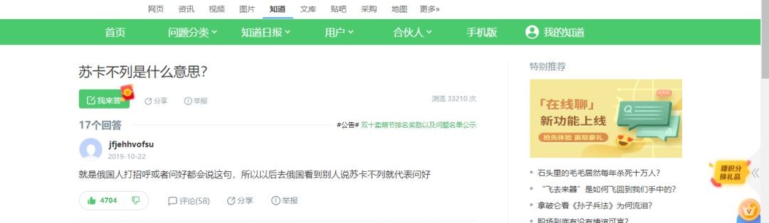 在百度知道上还有人这样回复,这要是真这样跟战斗民族打招呼,那就是"壮士"了。