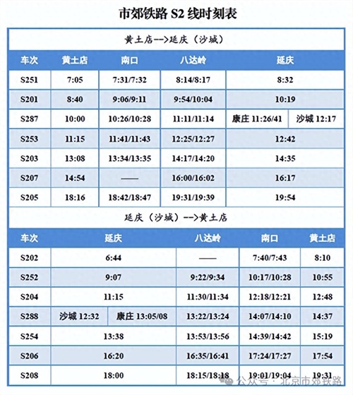 2024年春运期间(1月26日至3月5日),S2线执行高峰期列车开行方案,每日开行7对列车,具体列车时刻表如下。