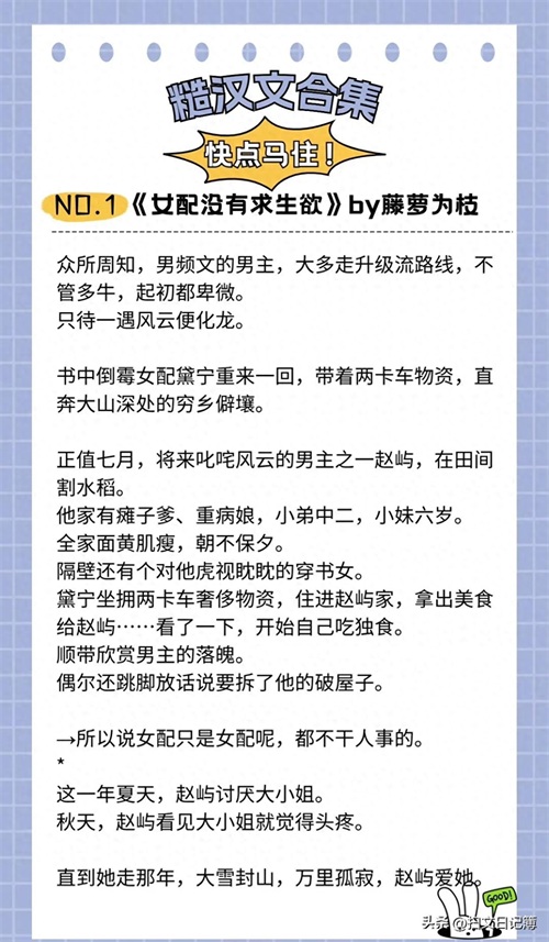六本【糙汉文】《白色口哨》《女配没有求生欲》《荷尔蒙陷阱》..