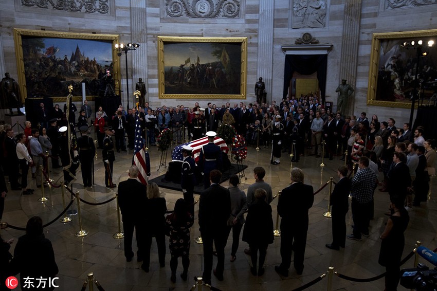 人民网讯当地时间2018年12月4日,美国华盛顿,老布什总统追悼仪式持续进行。12月5日,美国将在华盛顿国家教堂为已故前总统老布什举行国葬仪式。布什家族成员、美国总统特朗普、前总统奥巴马等美国政界人士以及多名国际政要都将为老布什送行。仪式结束后,老布什的灵柩将送回休斯敦安葬在家族墓地,落叶归根。