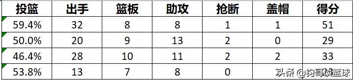 通过这轮的数据分析,我们可以看到詹姆斯场均出战41.1分钟,场均出手23.4次,我们很难想象这是一个年龄已经达到33岁,处于职业生涯后期的球员的数据。詹姆斯为了赢下比赛,倾其所有。