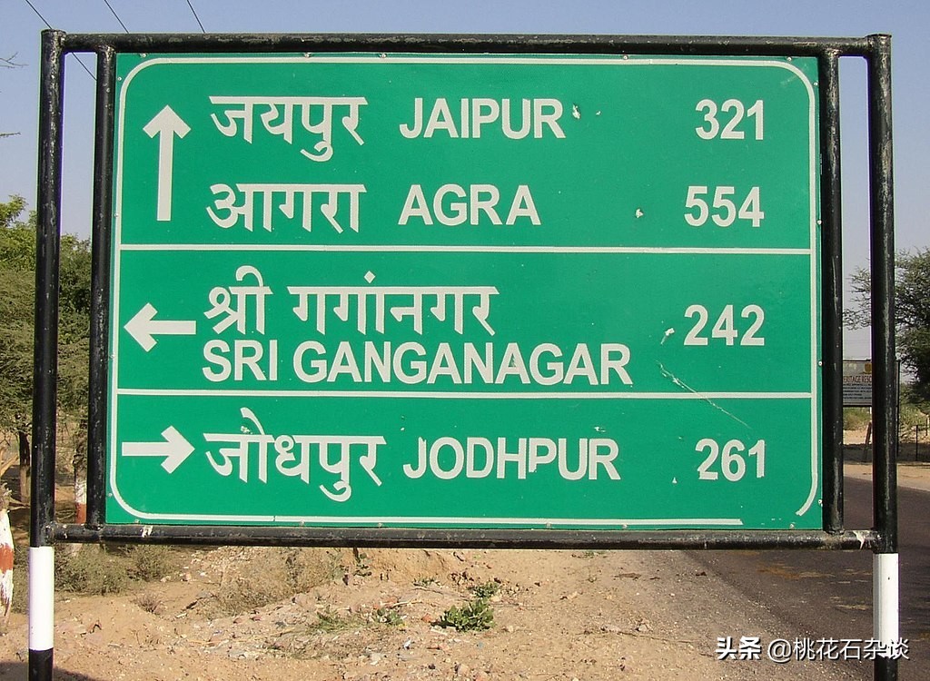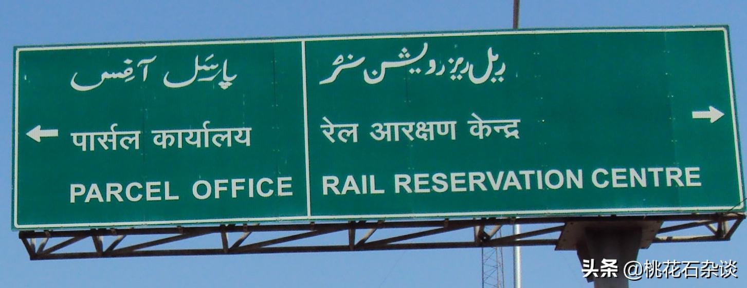 带有乌尔都语(最上)和印地语(中间)的印度路牌,可以看到同样的词汇写出来完全不一样
