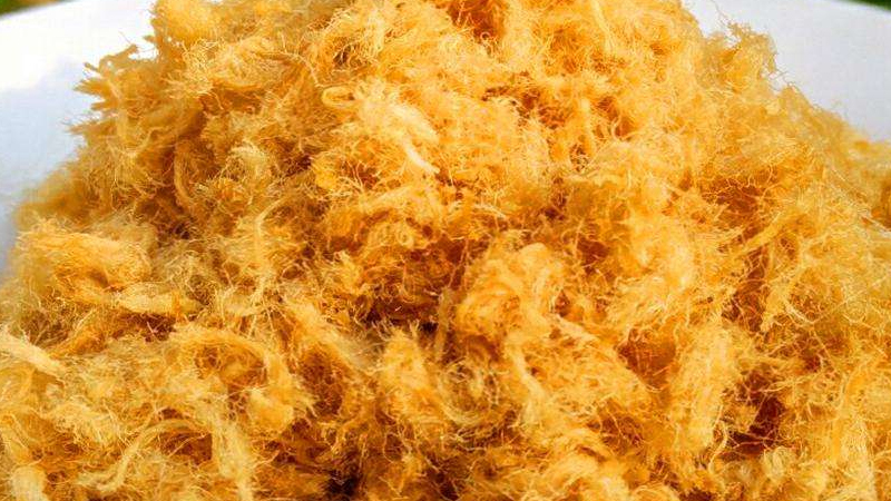 2.想让肉松的绒更长些,要顺着肉丝的纹理切。