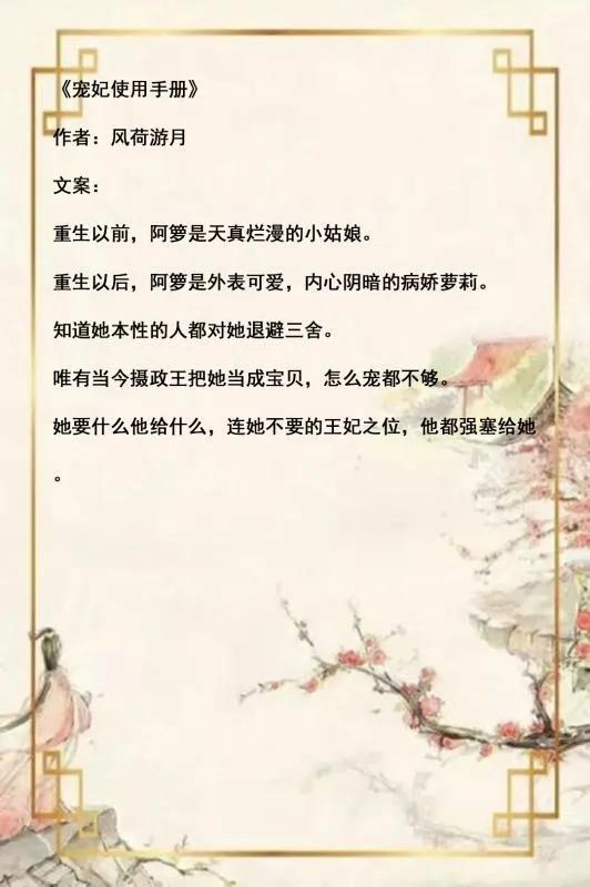 9.《宠妃使用手册》值得熬夜看的一本古言养成甜宠文,双C,女主有点病娇,但是男主是那种即使你病得不轻,我也要把你捧在掌心细心呵护的忠犬男,相当甜宠。