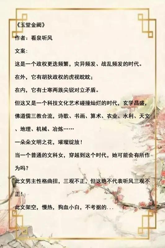 6.《玉堂金阙》一句话简介:一头忠狼的追妻史,妥妥的古言小甜饼,很不错 ,看了三遍,不过听大的男主总是有点疯批基因,哈哈哈,但是我很喜欢。