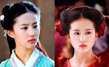 刘亦菲在张纪中的《神雕侠侣》中演绎小龙女,吸粉无数,而在若干年后,张纪中的《倚天屠龙记》里,刘诗诗扮演的黄衫女子也以曾经的造型出现。《陆小凤传奇》里的刘诗诗与《天龙八部》里的刘亦菲发型和耳环都几乎一样;甚至刘诗诗《射雕英雄传》的官方宣传画册中,更直接打上了“被媒体誉为刘亦菲接班人”的称呼。