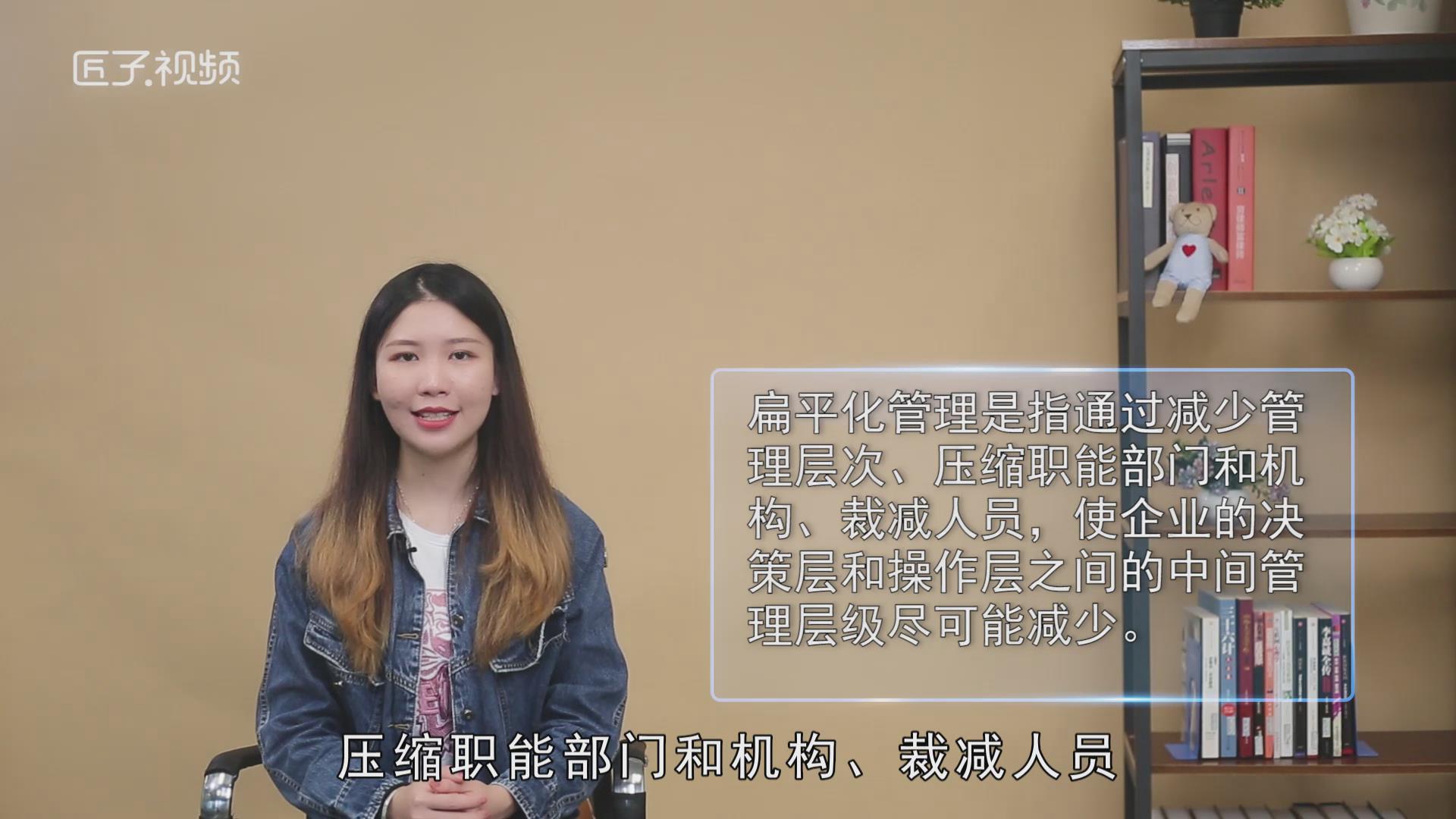 扁平化管理是指通过减少管理层次、压缩职能部门和机构、裁减人员,使企业的决策层和操作层之间的中间管理层级尽可能减少,以便使企业快速地将决策权延至企业生产、营销的最前线,从而为提高企业效率而建立起来的富有弹性的新型管理模式。