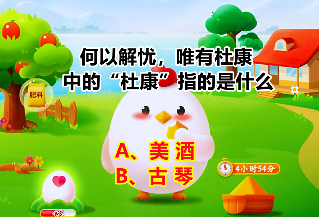 ,那这个“杜康”指的是什么呢?正好凌晨蚂蚁庄园更新了一道与