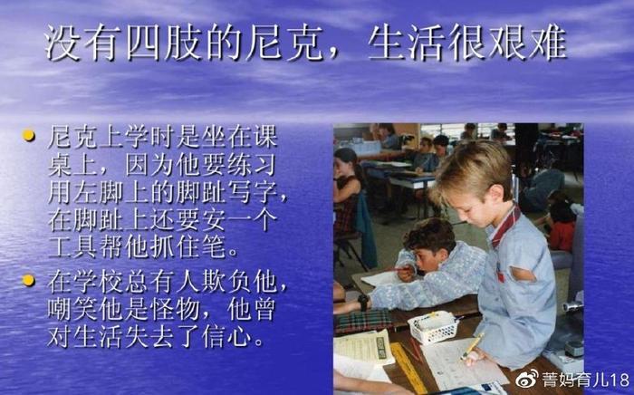 所以很多网友说这个妈妈是自私的,这个孩子让我想到闻名世界的尼克·胡哲。