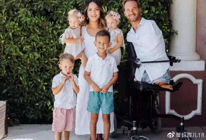 甚至他虽然没有四肢,他还娶到了一个漂亮的老婆,还生了4个孩子,而且4个孩子都非常的健康。