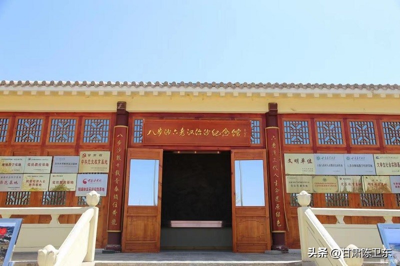 八步沙六老汉治沙纪念馆位于古浪县土门镇八步沙林场。八步沙,曾因此处风沙极大,人行八步后无法前进而得名。六老汉,古浪县六位年过半百的农民——郭朝明、贺发林、石满、罗元奎、程海和张润元。他们及其儿孙在现实中上演“愚公移山”的神话,造就了万亩沙漠变绿洲的奇迹。