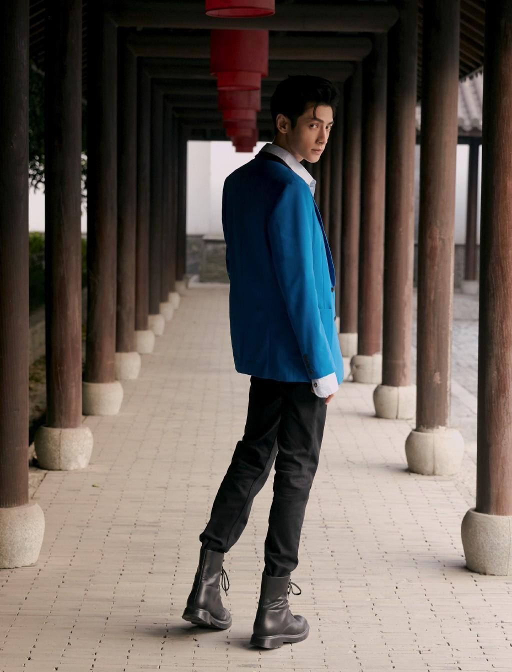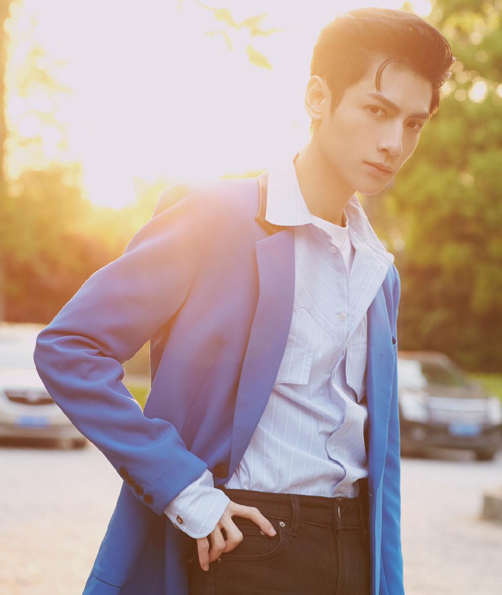 他演少年何以琛被人熟知,今穿条纹衬衫配蓝色西装,温柔冷俊