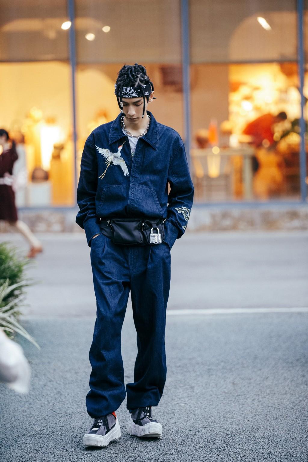 这张照片中罗云熙身穿一身的仙鹤连体裤搭配上脏脏辫的发型,这一身穿搭可以说是充满了潮流时尚气息,一看就充满了街头风,非常帅气干练,让人眼前一亮。