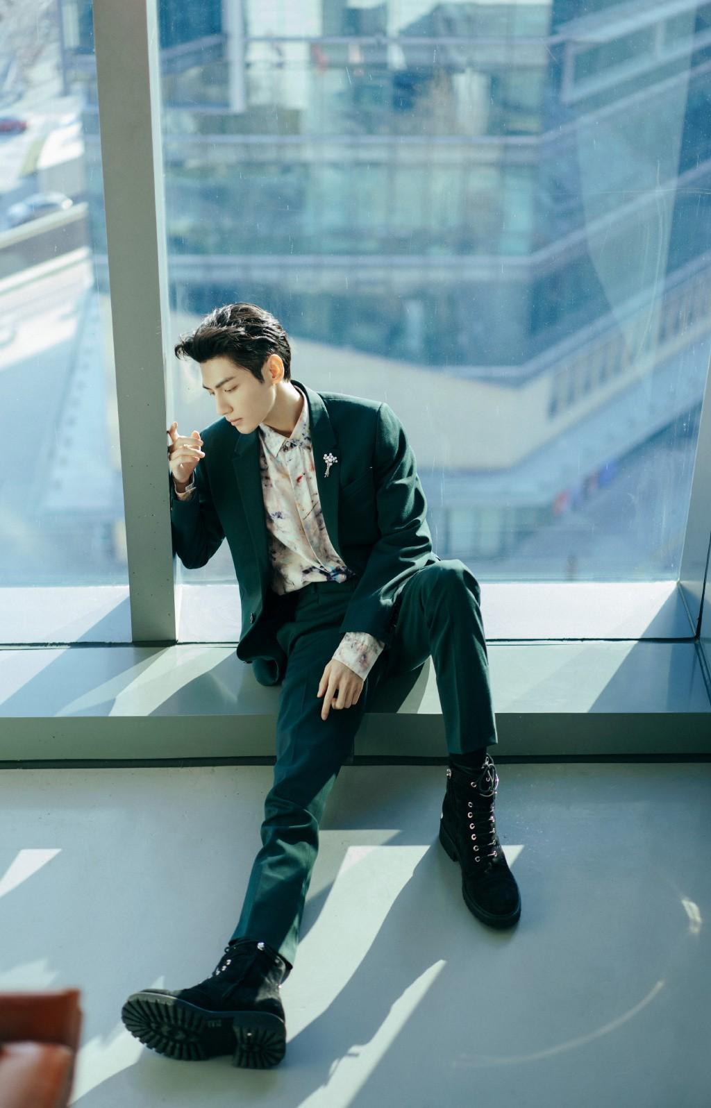 罗云熙这次身穿一件印花衬衫, 第一眼看上去有种花花公子的感觉,充满邪魅气质,搭配上外面的深绿色的西装套装,显得双腿十分修长,吸睛能力满分。