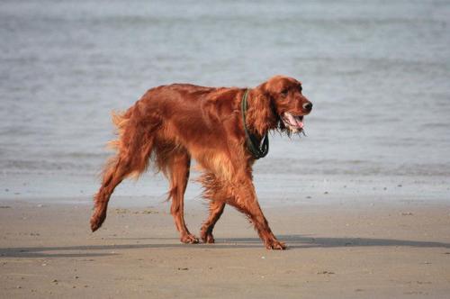 长相非常漂亮,毛色也相当光鲜亮丽,两只大耳朵像长发一样垂在脸颊之间。远处看去,特别优雅,像极了拉布拉多猎犬,但是爱尔兰赛特犬,它的速度可是非常快的。体型优美,速度奇快。甚至还被称为是猎犬当中最漂亮的一位。