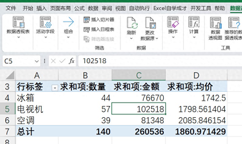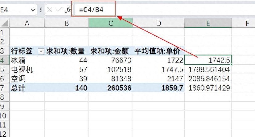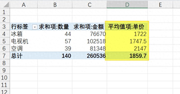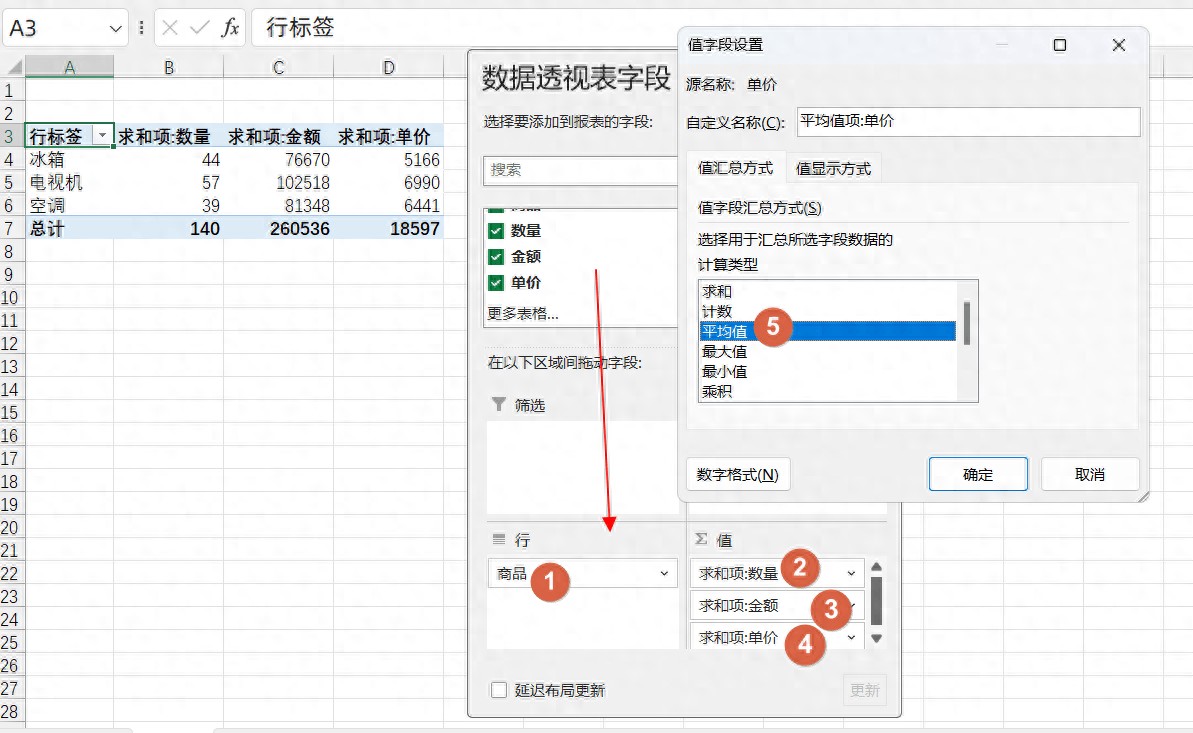 因为默认是求和,所以点开单价,值字段设置,将计算类型更改成平均值