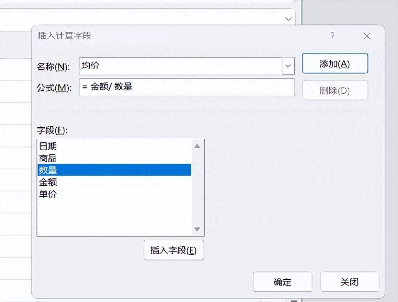 在计算字段里面,我们可以自定义一个名称,可以定义为均价