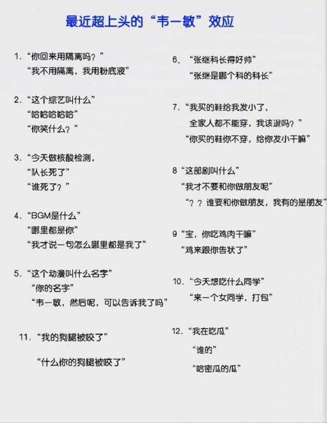 就是类似的无厘头的梗都可以叫“韦一敏效应”。