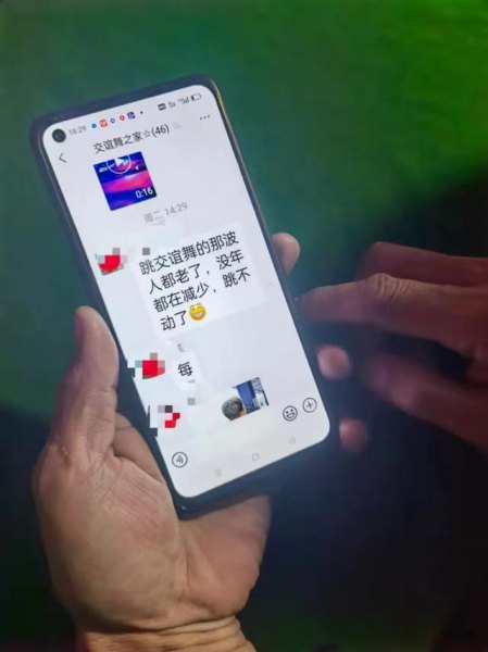 李金宝建的舞友群,舞厅开业时会在群里通知。一位群友感叹,跳交谊舞的人都老了。新京报记者李照摄