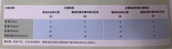 西班牙法规对葡萄酒的熟化程度规定为:
