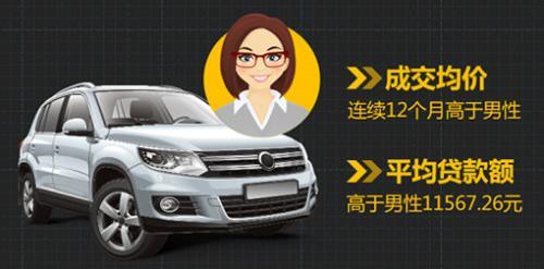 女性二手车消费者消费均价12月再创新高,消费量占比由上月4.79%飙升至10.55%,环比上月增长近6个百分点;在消费车型中,女性愈加青睐SUV,增量依然强势,国产品牌哈佛H6竟是女性SUV首选。从贷款额方面来看,12月女性贷款额依然保持领先,高于男性平均贷款额11567.26元。