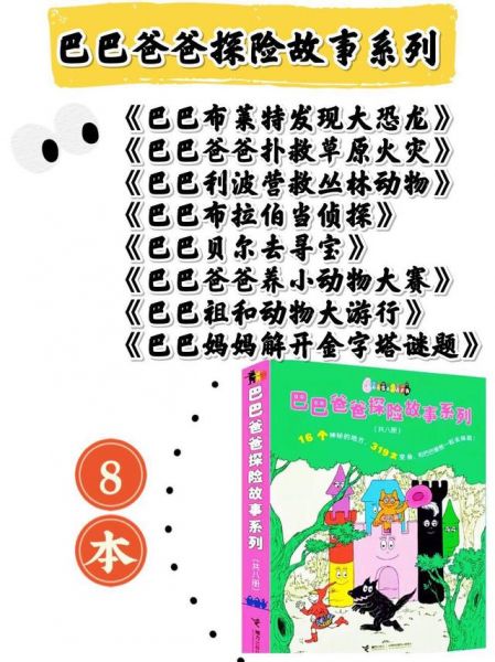 ☆《巴巴爸爸探险故事系列》一共8本,主要讲述的是巴巴爸爸一家去往农场,乡村,丛林,山洞,河流,城堡,动物园……所经历的16个探险故事,16钟不一样的欢乐体验,300多种可里可里巴巴变。它们通过变身去解救被困的动物,揭开历史谜题,学会与自然和谐相处。