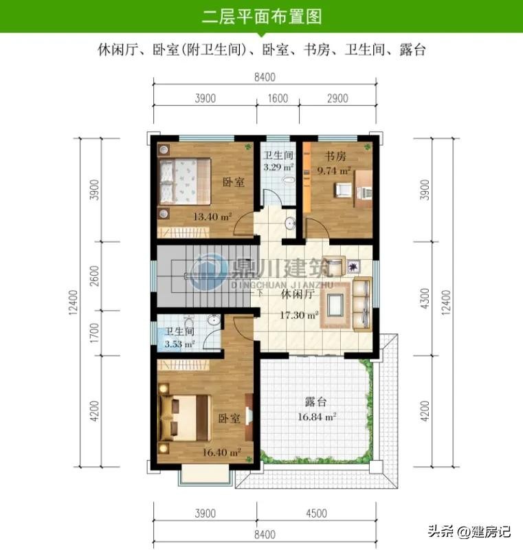 二 层:3卧室、棋牌室(附阳台)、卫生间、露台