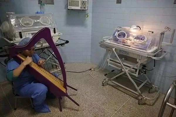 (一位受过音乐救助的孩子成为医生,为新生儿弹奏竖琴)