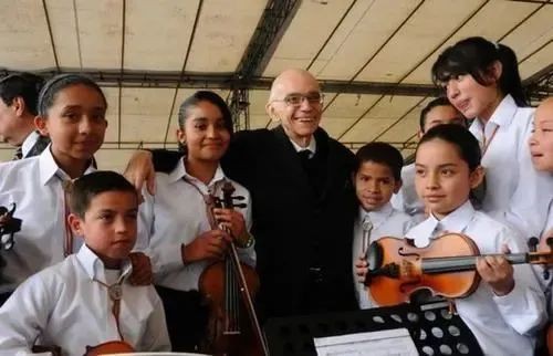他走遍贫穷的角落、少年监狱、学校,把乐器免费发给孩子们,保证每个人都可以得到一件。他告诉孩子们:你们可以自由学习和演奏乐曲,不要担心有人说你们弹奏得不好,你们有无限潜能!