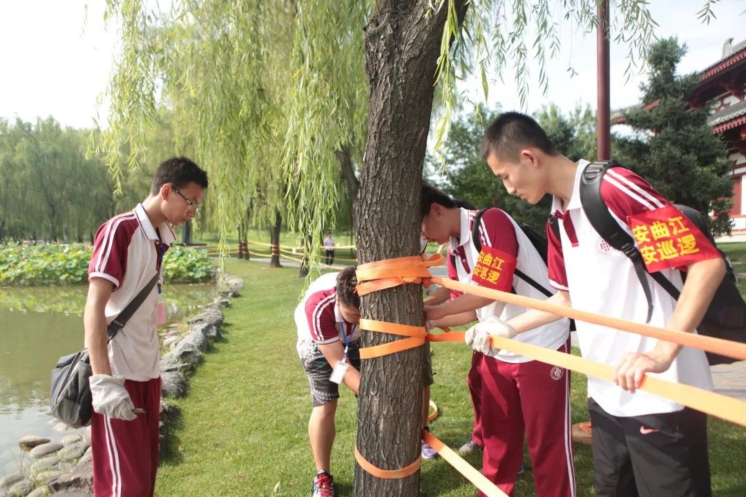 学校统一组织学生在曲江新区大唐芙蓉园等18个单位进行暑期社会实践活动,将书本所学知识转化为实践能力。